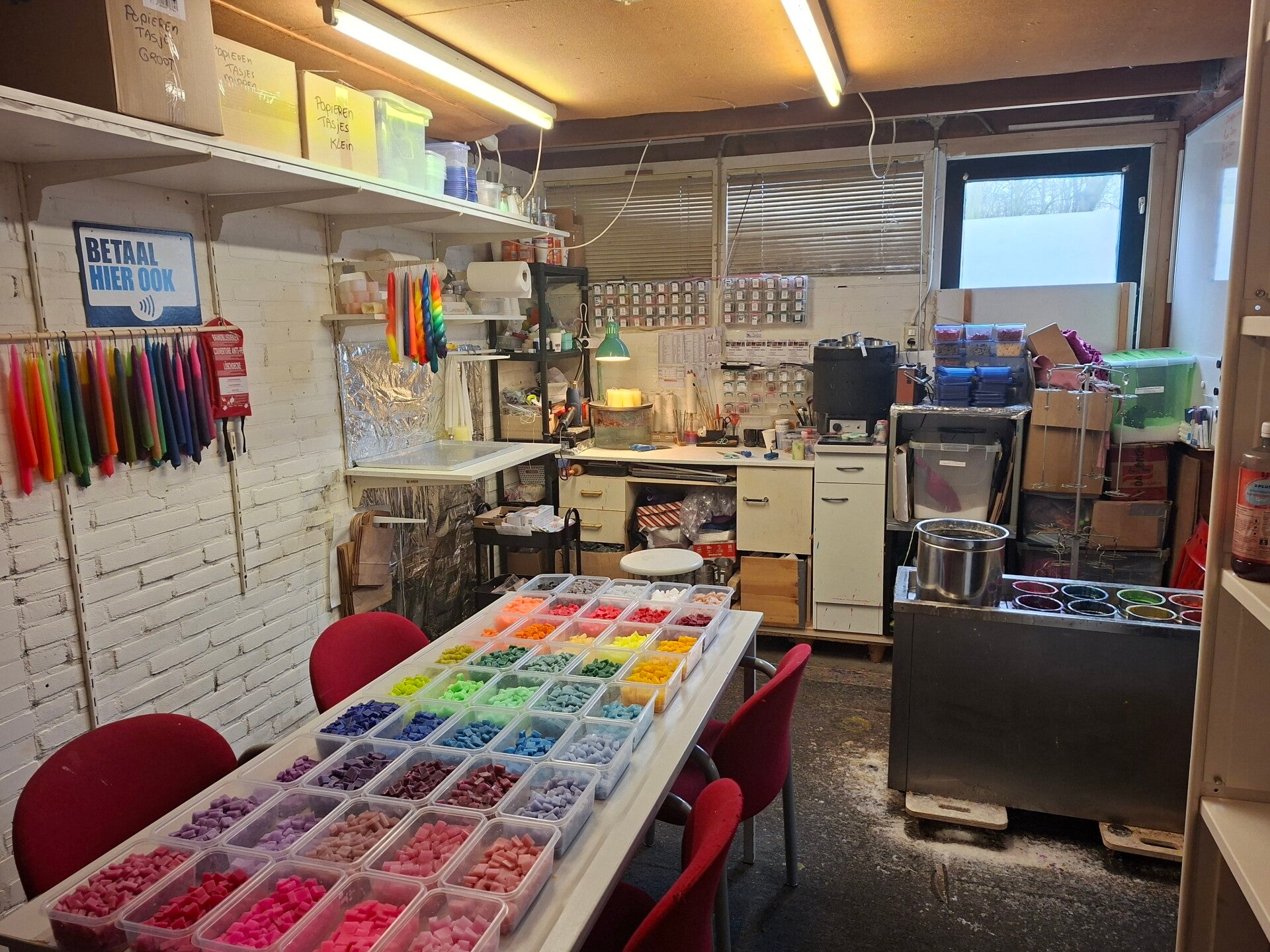 - Toegang tot stopcontacten voor de kaarsenketels voor het opwarmen van de kaarswas.
